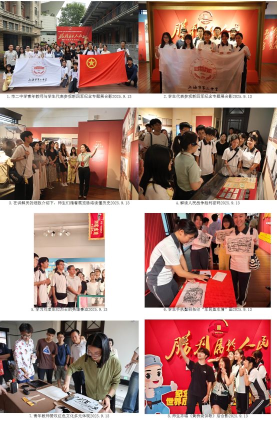 此次活动是上海市第二中学与新四军纪念馆、上海市历史博物馆(上海革命历史博物馆)馆校共建的一次成功实践。研学融合党团建设与思政教育,共同搭建跨区域红色文化传播平台。通过“看、寻、做、唱”的多维体验,不仅激励师生成为红色历史的参观者,更成为革命精神的解读者与传播者,使“胜利属于人民”的精神更加具象化。未来,学校将开发“场馆里的思政课”系列课程,让红色基因在校园永续传承。